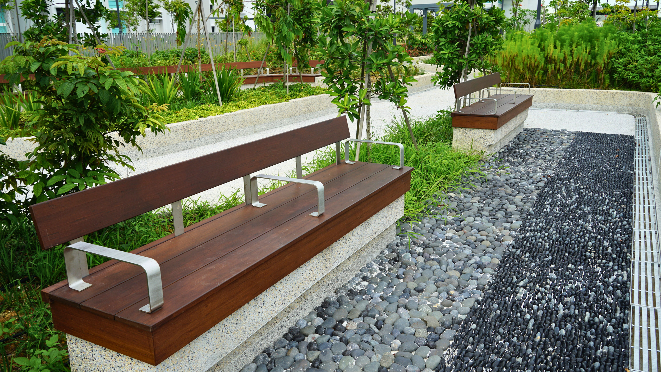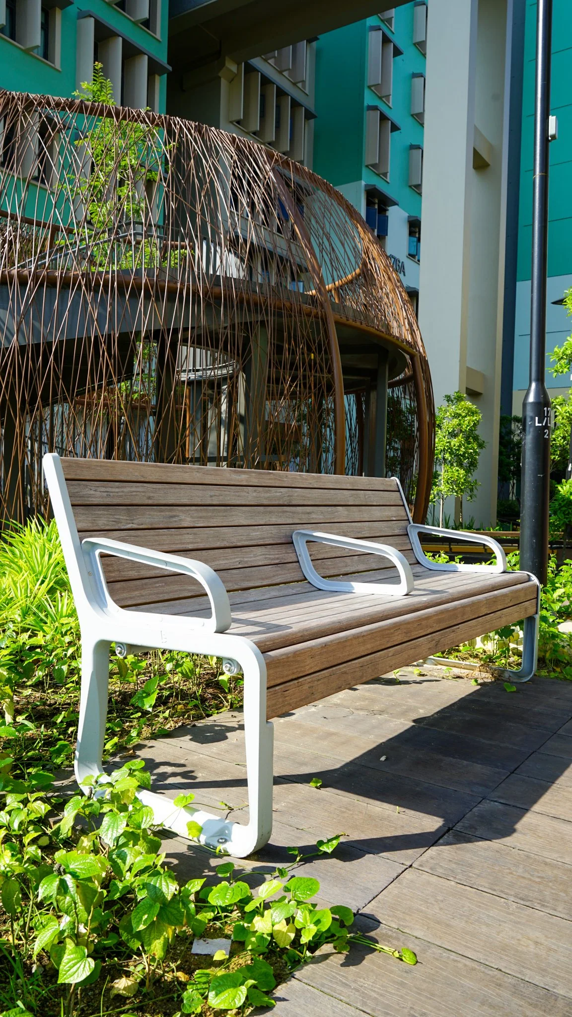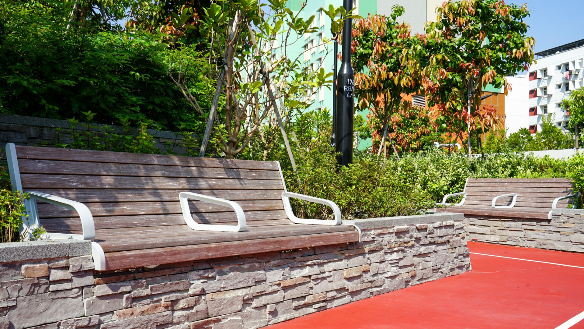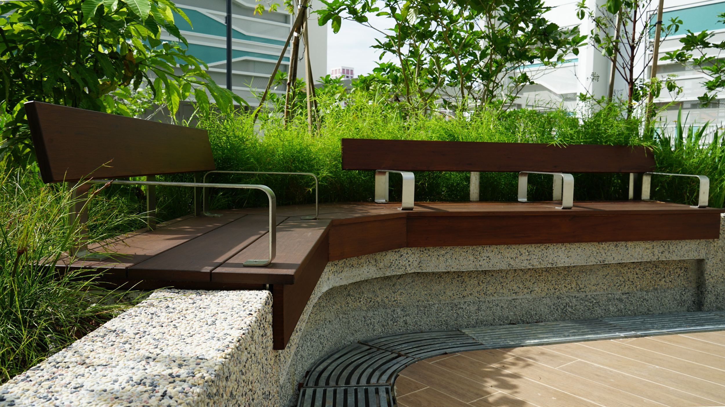 The ONEWOOD benches at Hougang Olive stand as a testament to material endurance. Despite constant exposure to high humidity and heavy daily use, these benches retain their structural shape and smooth finish, offering a sustainable, low-maintenance seating solution for public infrastructure.