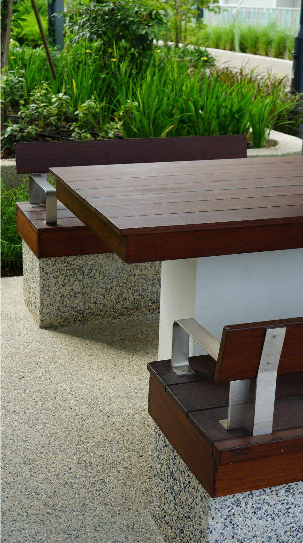 ONEWOOD Timber is the ideal choice for robust outdoor seating at the new APSN campus. The material is utilised for its exceptional durability and safety, meeting the high demands of this specialized educational environment. ONEWOOD provides students with a comfortable space for rest and interaction, its natural aesthetic offering a resilient solution built to withstand heavy daily use.